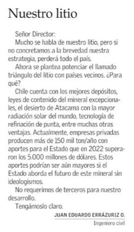 Sigue la lentitud del litio, ¿se está hipotecando el futuro del país? - (opinion.cooperativa.cl)