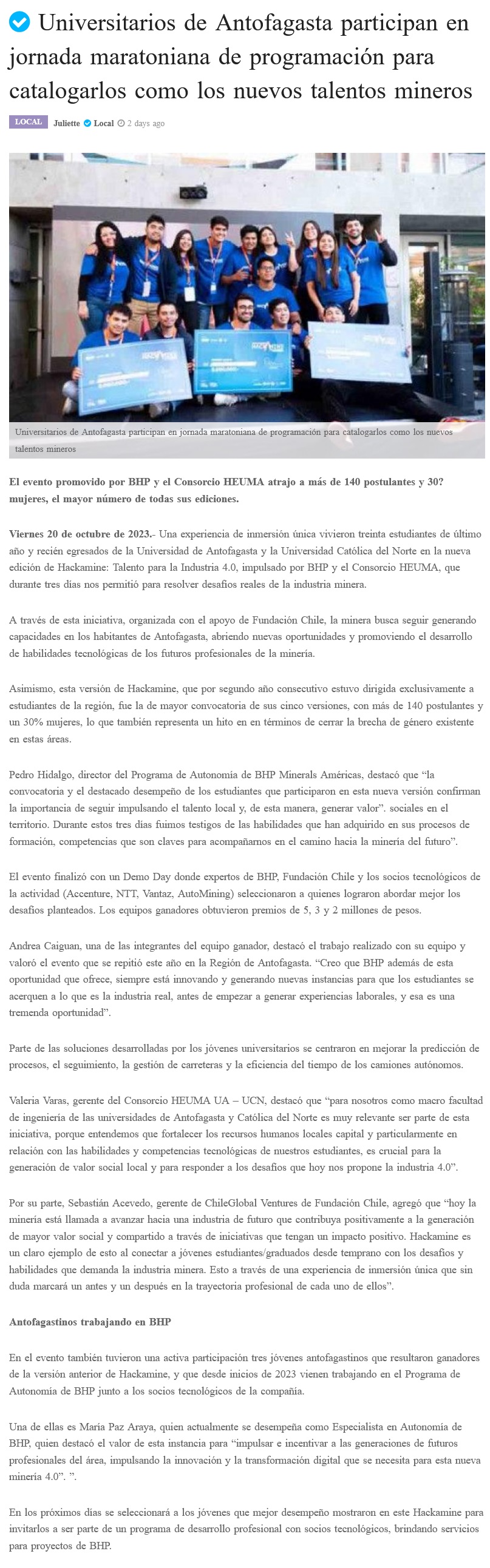Universitarios de Antofagasta participan de maratónica jornada programación para clasificar como los nuevos talentos de la minería - (tierramarillano.cl)
