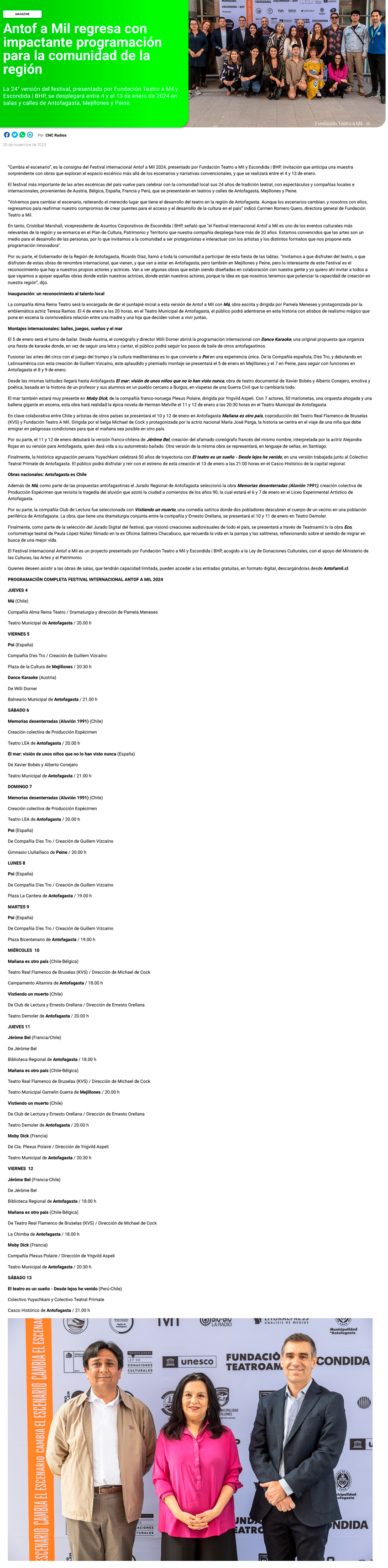 Vuelve el Festival Antof a Mil en enero: habrá varios montajes y espectáculos gratuitos en Antofagasta - (biobiochile online)