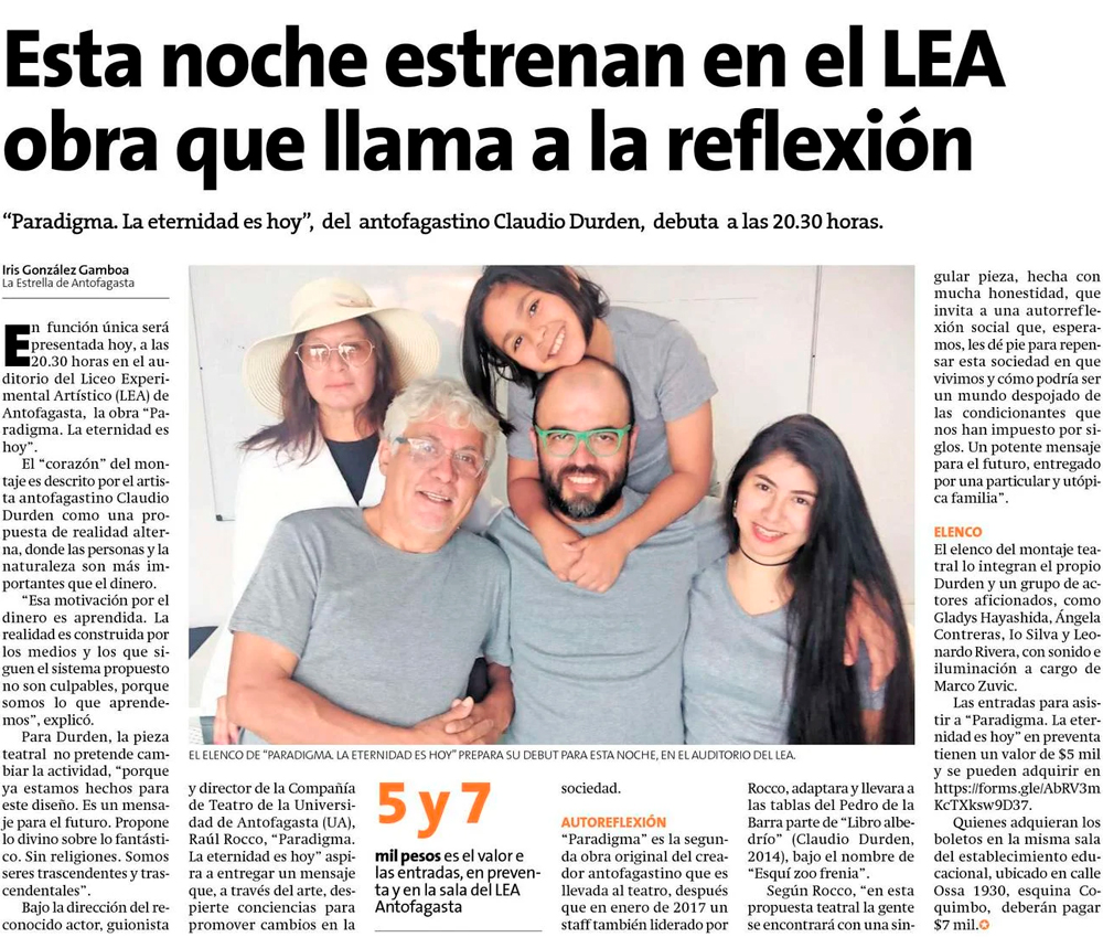 "Paradigma. La eternidad es hoy": Teatro que llama a la autoreflexión - (El Mercurio de Antofagasta)
