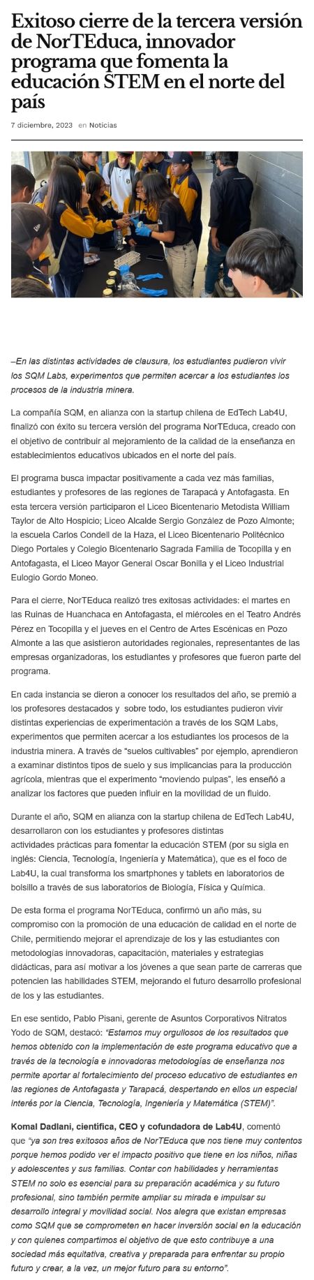 Cierran tercera versión de NorTEduca, innovador programa que fomenta la educación STEM en el norte del país - (elsoldeiquique)