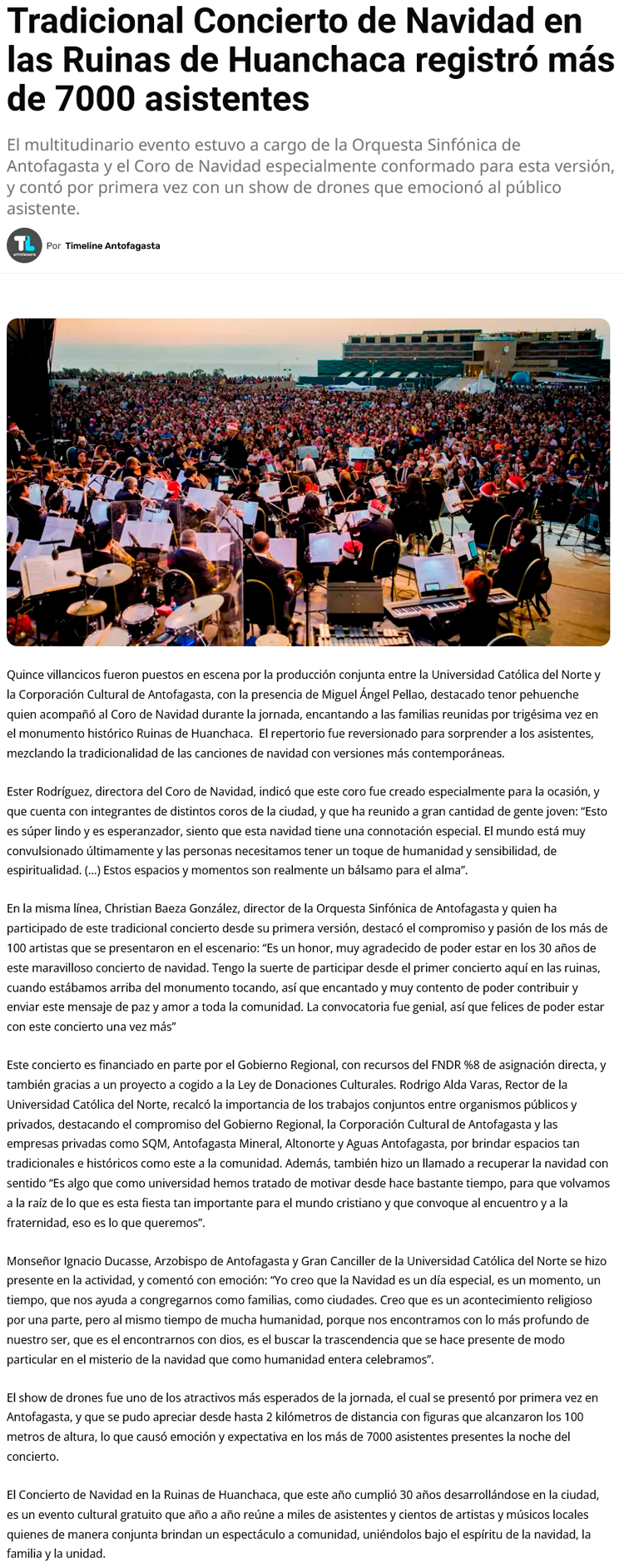 Tradicional Concierto de Navidad en las Ruinas de Huanchaca registró más de 7000 asistentes - (diarioangamos)