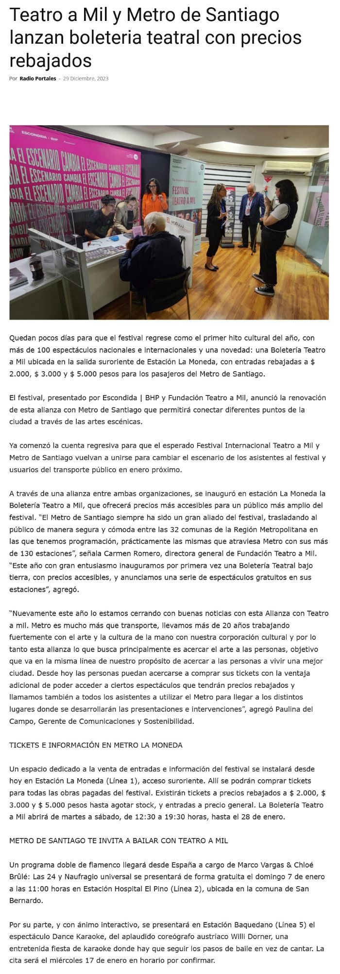 Boletería Teatro a Mil: Metro y Fitam presentan alianza con entradas desde $2.000 y actividades gratis - (biobiochile online)
