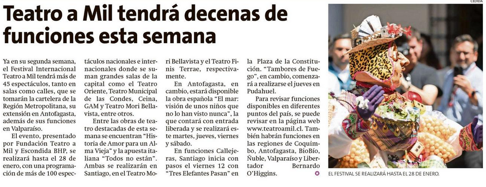Teatro a Mil tendrá decenas de funciones esta semana - (Estrella de Antofagasta)
