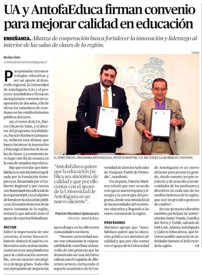UA y AntofaEduca firman convenio para mejorar calidad en educación de Antofagasta - (soyantofagasta)