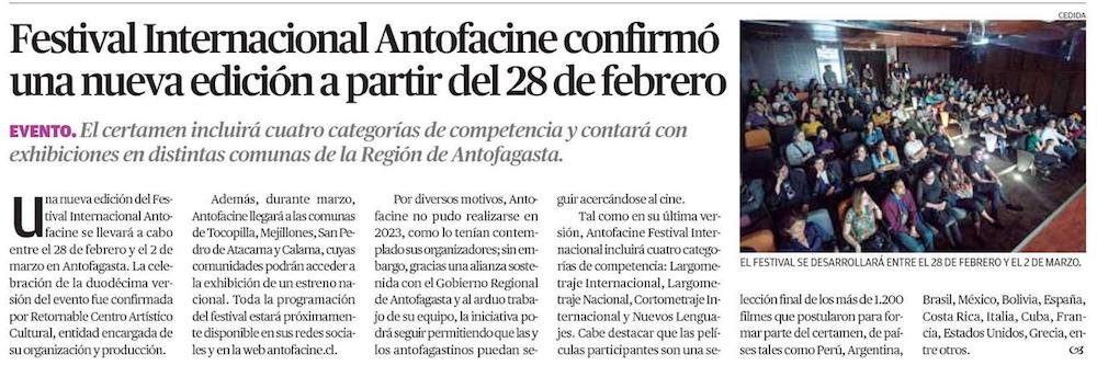 Antofacine confirma la realización de su 12° versión - (El Mercurio de Antofagasta)