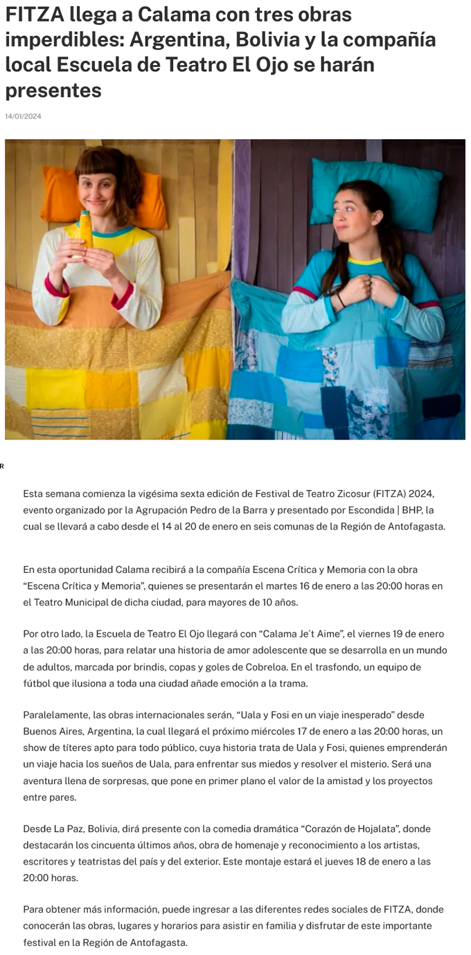 FITZA 2024 llega a Calama con tres obras imperdibles y gratuitas al Teatro Municipal - (cpcomunicaciones.cl)