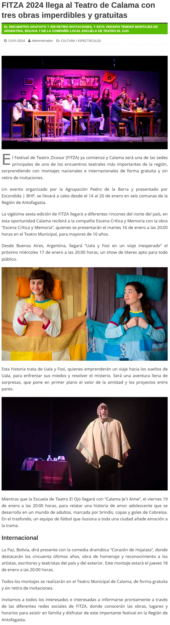 FITZA llega a Calama con tres obras imperdibles: Argentina, Bolivia y la compañía local Escuela de Teatro El Ojo se harán presentes - (calamaenlinea.cl)
