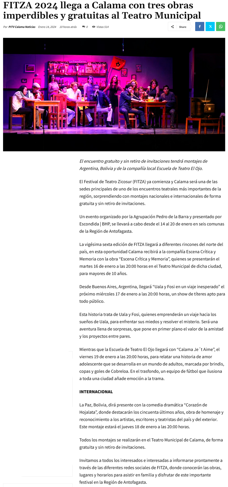 FITZA llega a Calama con tres obras imperdibles: Argentina, Bolivia y la compañía local Escuela de Teatro El Ojo se harán presentes - (calamaenlinea.cl)
