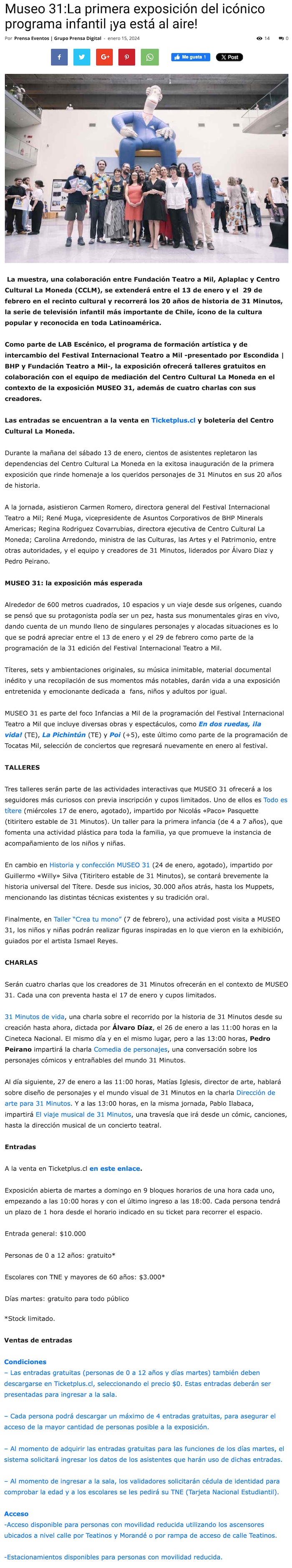 "Museo 31": Cómo es la exposición que celebra 20 años de 31 Minutos con títeres, talleres y charlas - (biobiochile online)