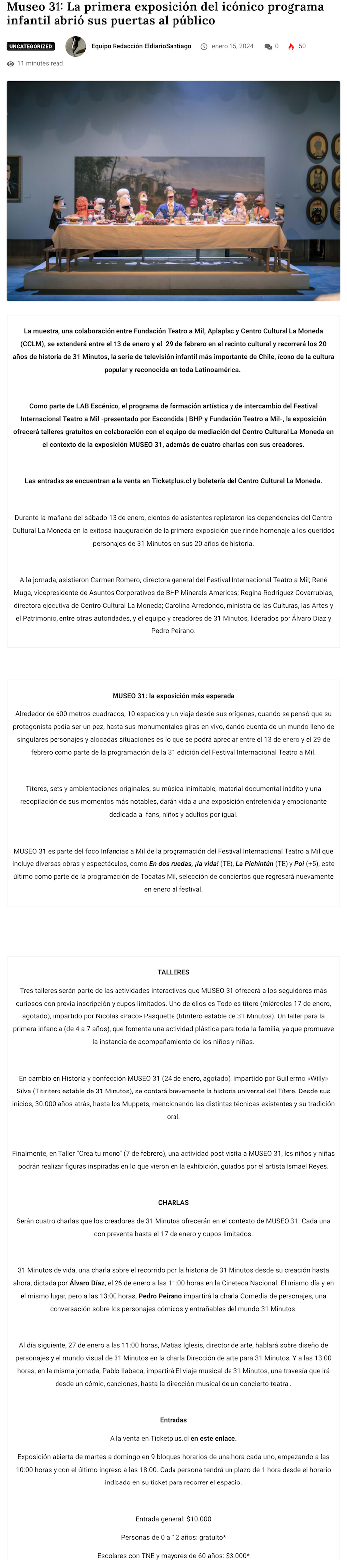 "Museo 31": Cómo es la exposición que celebra 20 años de 31 Minutos con títeres, talleres y charlas - (biobiochile online)