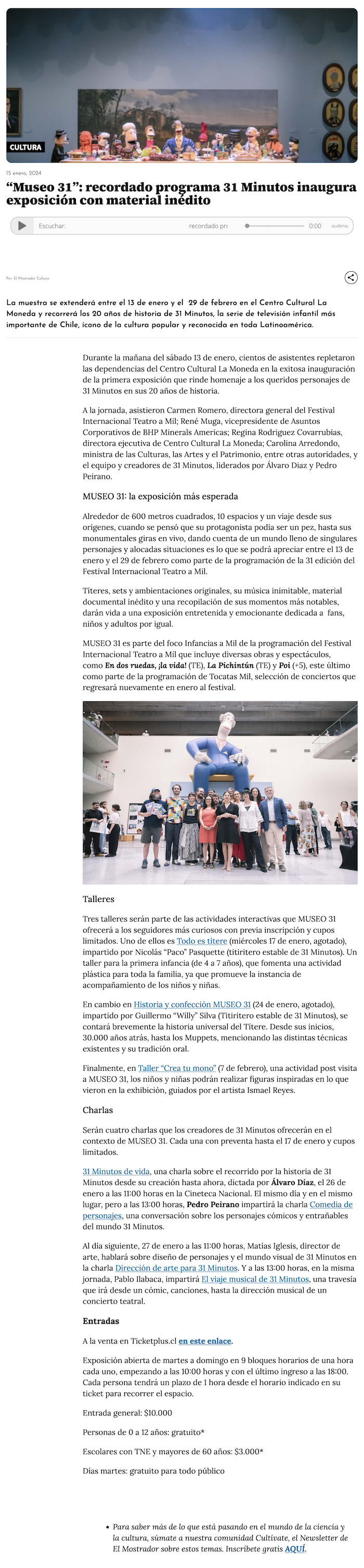 "Museo 31": Cómo es la exposición que celebra 20 años de 31 Minutos con títeres, talleres y charlas - (biobiochile online)