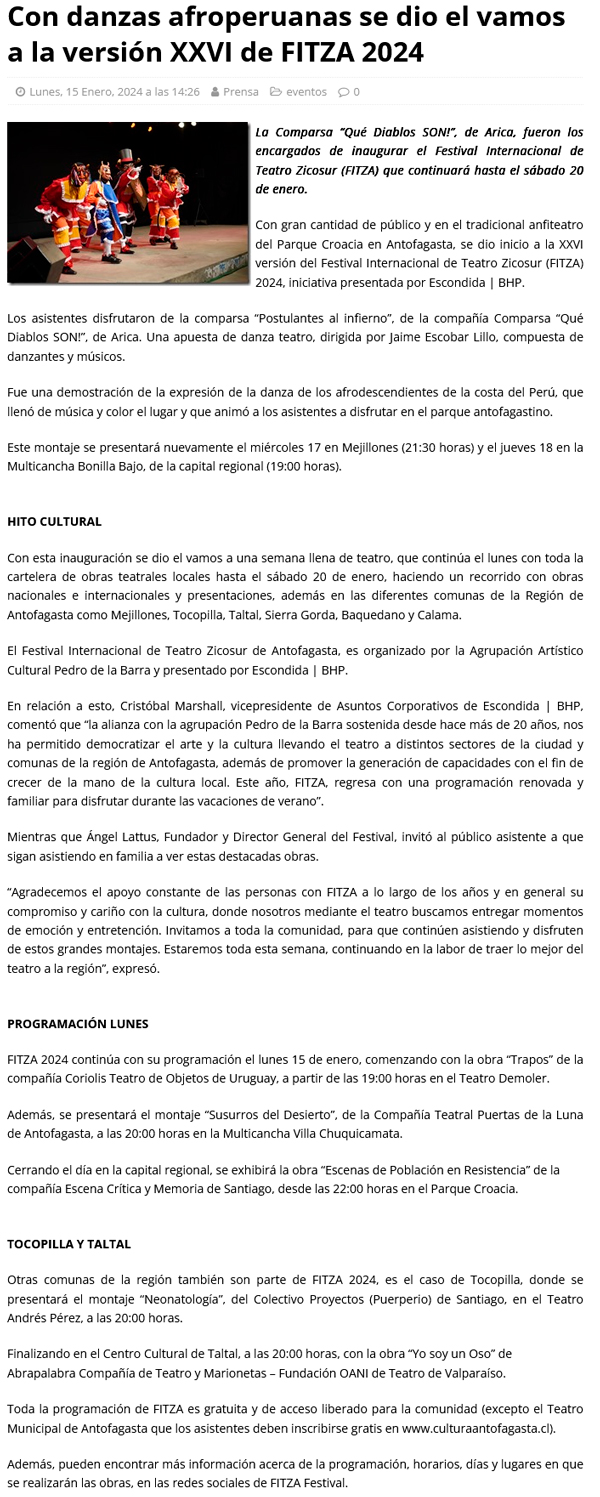 Con danzas afroperuanas se dio el vamos a la versión XXVI de FITZA 2024 - (antofapop.cl)