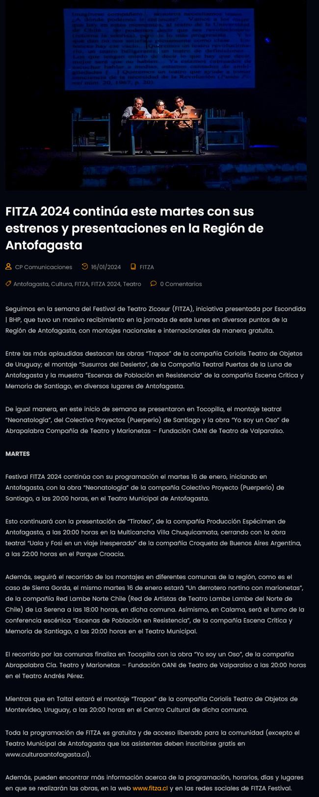 FITZA 2024 continúa este martes con sus estrenos y presentaciones en la Región de Antofagasta - (antofagastanoticias)