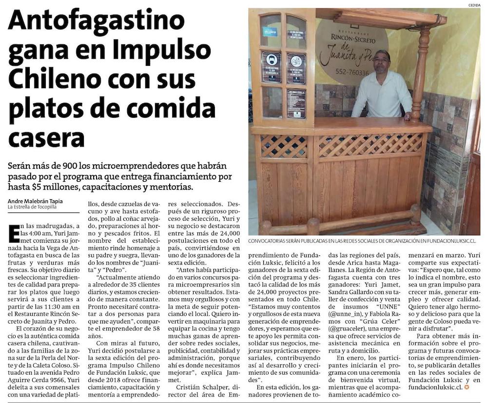 La historia del antofagastino que ganó Impulso Chileno con su restaurante de comida casera y chilena - (regionesnoticias.cl)