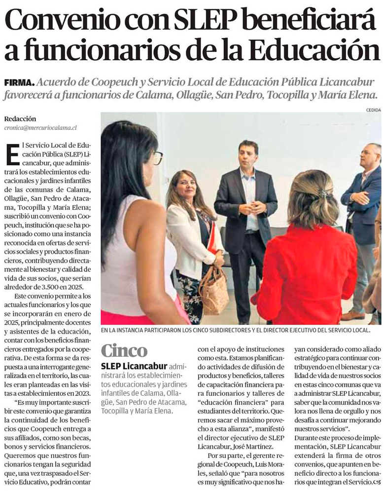 SLEP Licancabur firma convenio con entidades ligadas a Comdes - (El Mercurio de Calama)