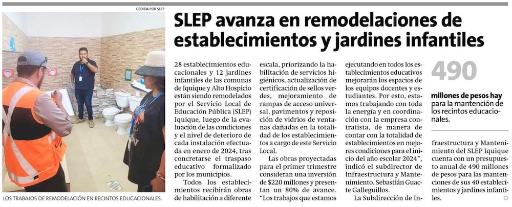 Destinan $490 millones para trabajos de remodelación de establecimientos y jardines infantiles - (El Longino de Iquique)