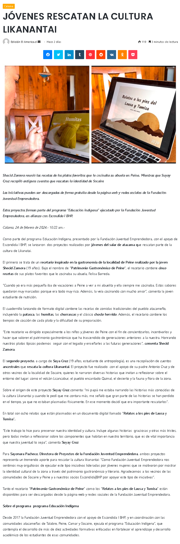 Jóvenes presentan proyectos que rescata la cultura likanantai - (calamaenlinea.cl)