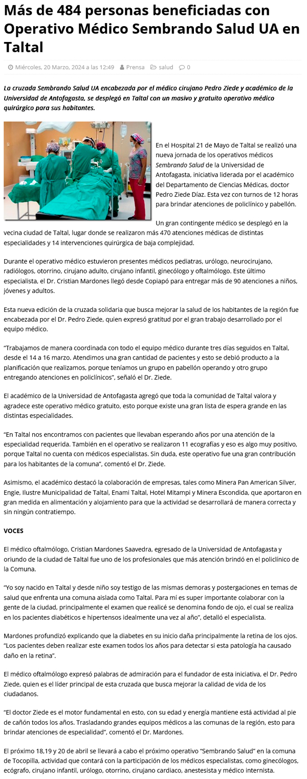 Más de 484 personas beneficiadas con Operativo Médico Sembrando Salud UA en Taltal - (termometro.cl)