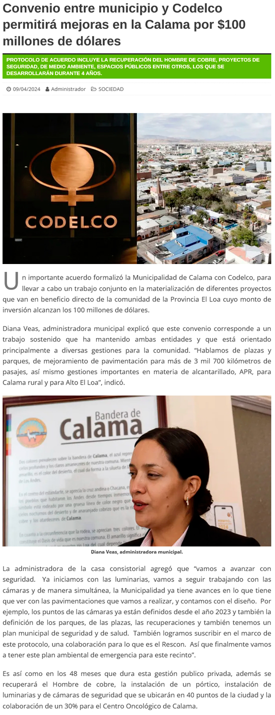 Invertirán 100 millones de dólares en proyectos para Calama - (El Mercurio de Calama)