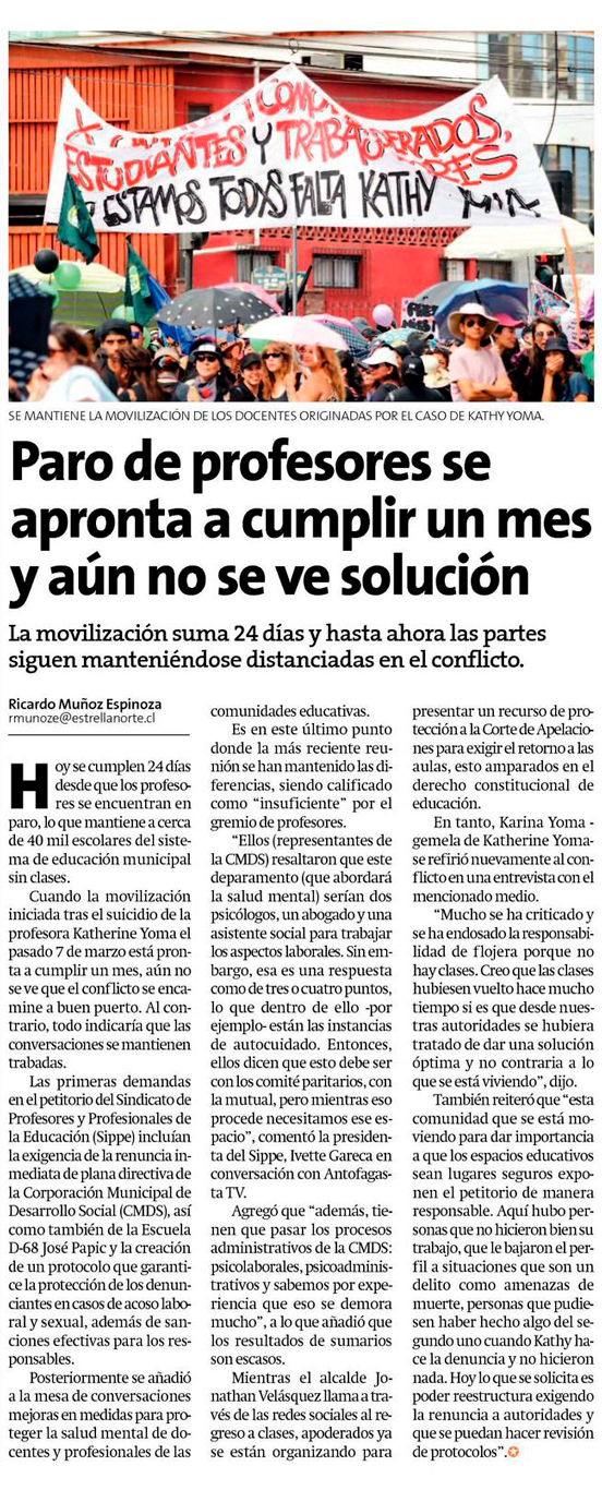 Se mantiene paro indefinido de los trabajadores de la educación en Tocopilla - (La Estrella)
