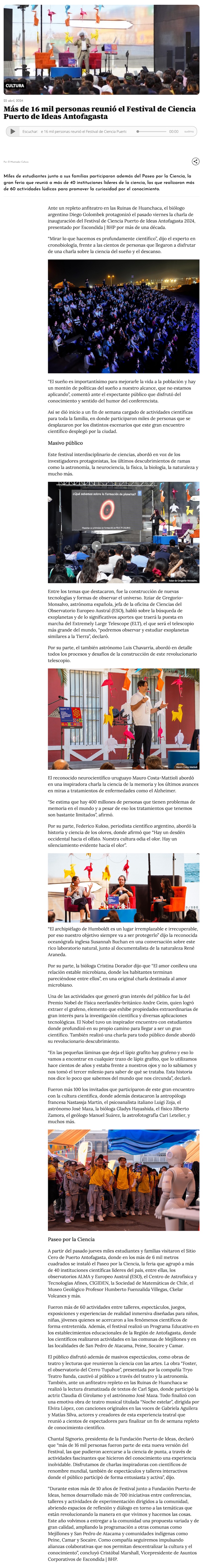 Más de 16 mil personas participaron en las actividades del Festival de Ciencia Puerto de Ideas Antofagasta 2024 y del Paseo por la Ciencia, la feria científica más grande de Chile - (g5noticias.cl)
