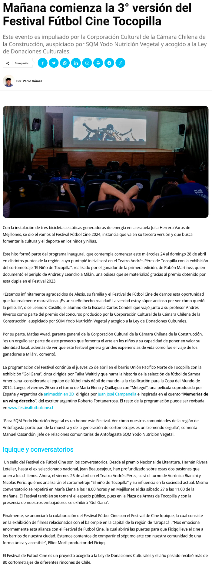 Hoy es el lanzamiento del Festival Fútbol Cine en Toco - (La Estrella)