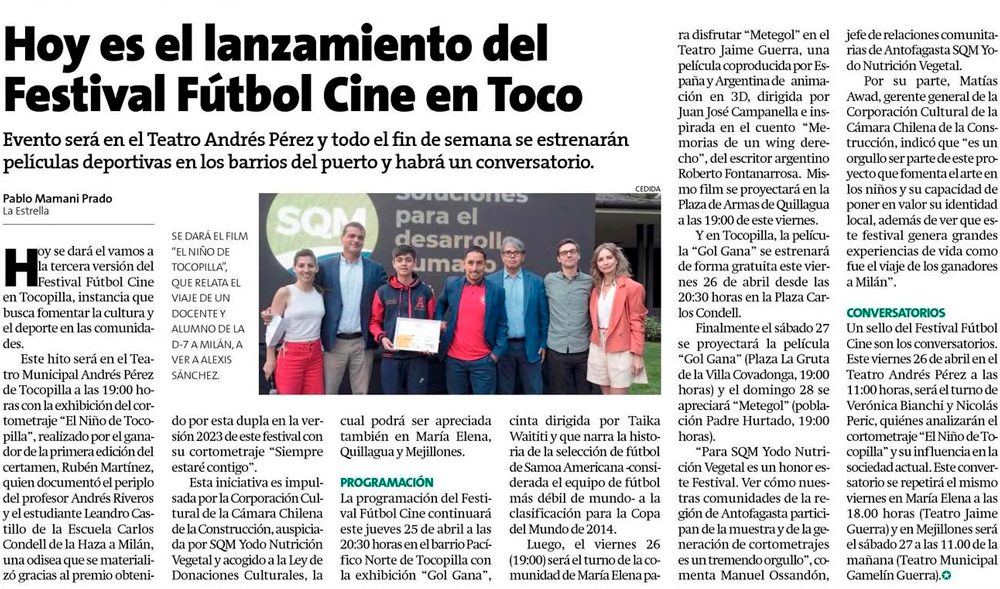 Mañana comienza la 3° versión del Festival Fútbol Cine Tocopilla - (timeline)