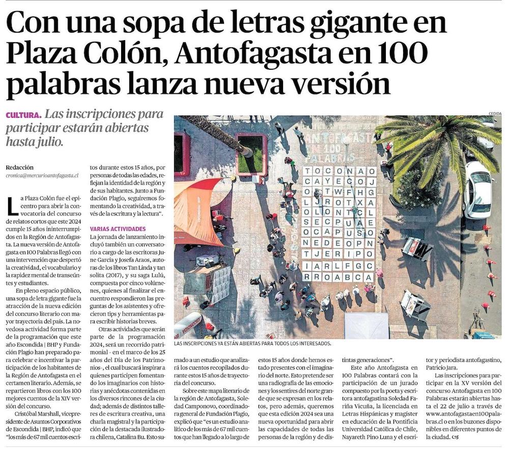 Con una sopa de letras gigante en la Plaza Colón: Antofagasta en 100 Palabras lanzará su versión XV - (timeline)