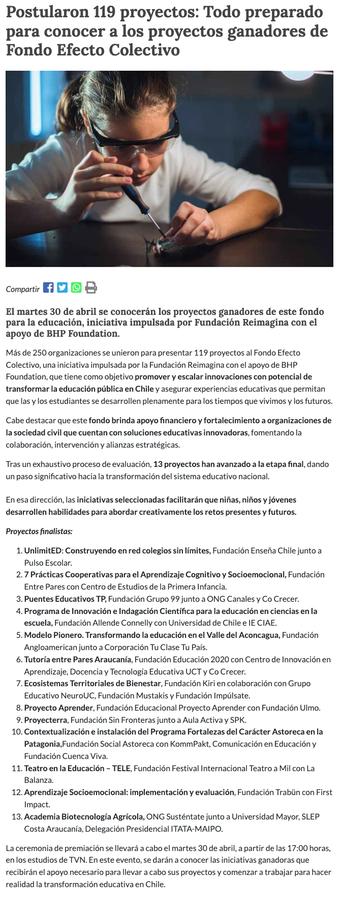 Postularon 119 proyectos: Todo preparado para conocer a los proyectos ganadores de Fondo Efecto Colectivo - (cualestuhuella.cl)