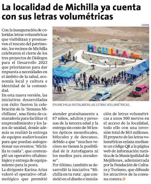 Diálogos para el Desarrollo: Michilla tiene sus propias letras volumétricas - (madero.cl)