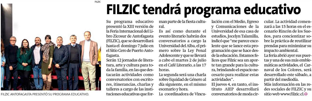 Filzic 2024 da inicio a su nueva edición con homenaje al Liceo Experimental Artístico - (El Mercurio de Antofagasta)