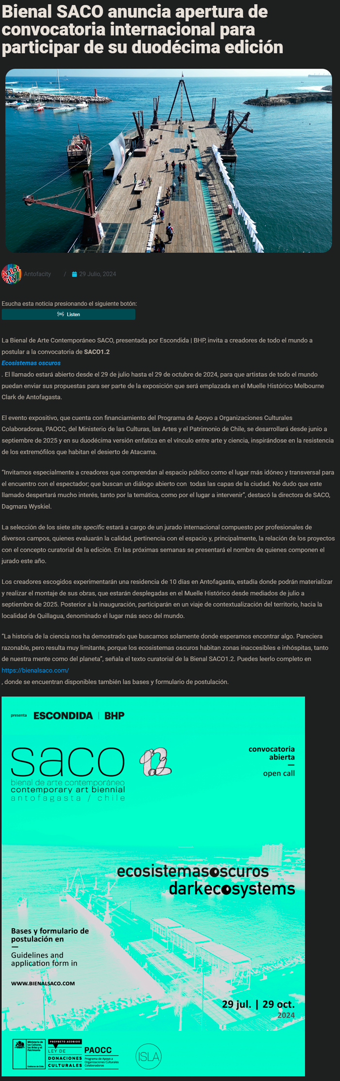 Bienal SACO anuncia apertura de convocatoria internacional para participar de su duodécima edición - (antofagastanoticias)