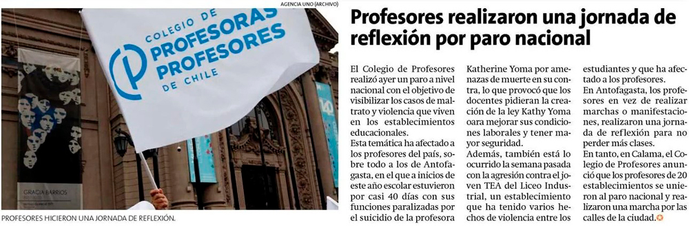 Docentes de 12 establecimientos se sumaron a paro por violencia escolar - (Estrella de Iquique)