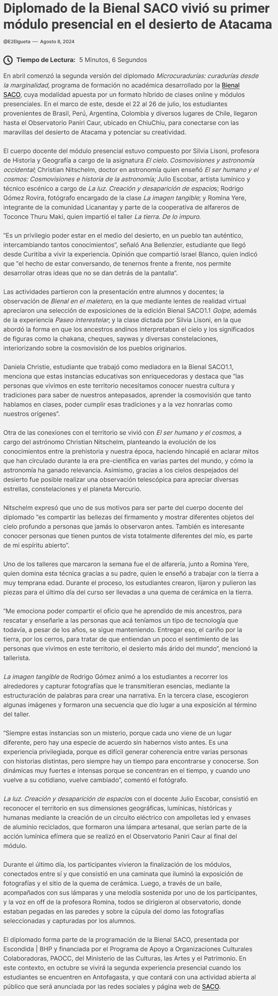 Diplomado de la Bienal SACO vivió su primer módulo presencial en el desierto de Atacama - (regionesnoticias.cl)