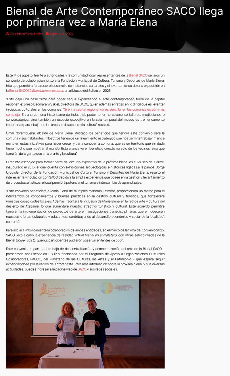 Bienal de Arte Contemporáneo SACO llega por primera vez a María Elena - (regionesnoticias.cl)
