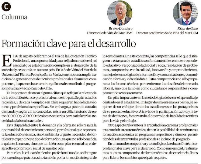 Opinión por Bruno Dondero , Director Sede Viña del Mar USM, Ricardo Cahe, Director académico Sede Viña del Mar USM.