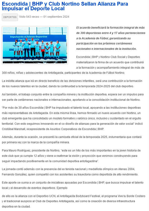 Escondida | BHP y Club Nortino sellan alianza para impulsar el deporte local - (antofagasta.tv)