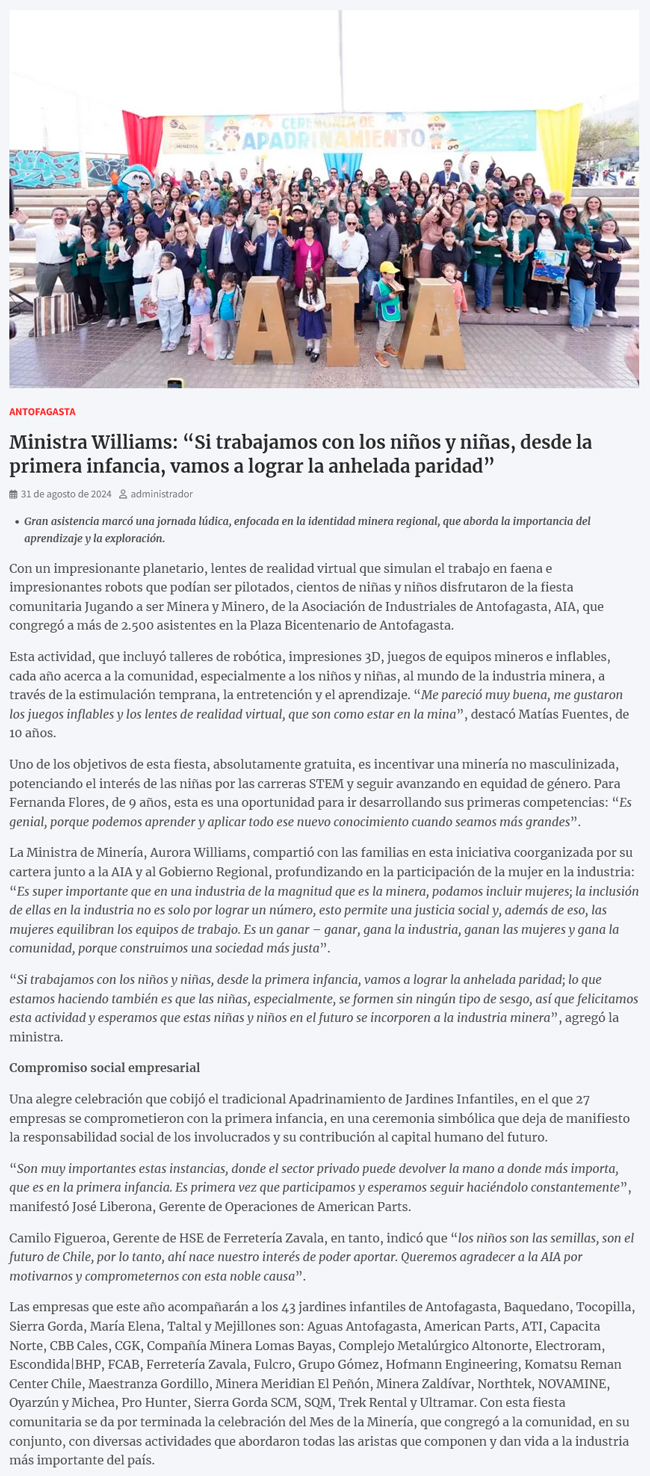 Ministra Williams: “Si trabajamos con los niños y niñas, desde la primera infancia, vamos a lograr la anhelada paridad” - (antofapop.cl)