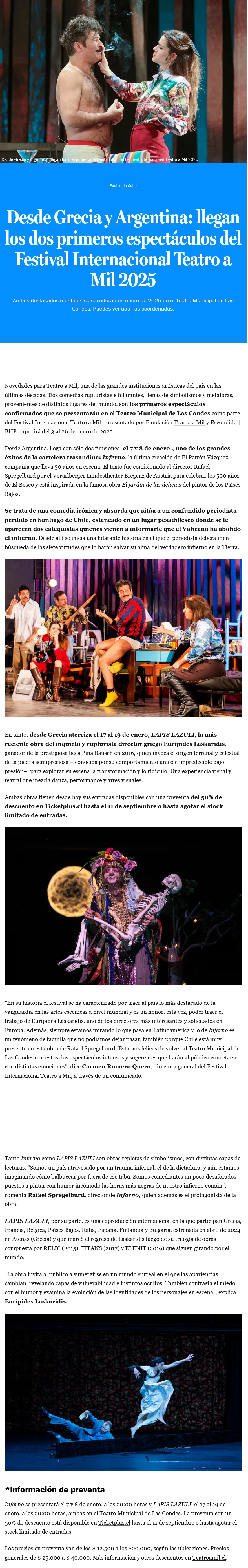 Desde Grecia y Argentina: llegan los dos primeros espectáculos del Festival Internacional Teatro a Mil 2025 - (La Tercera)