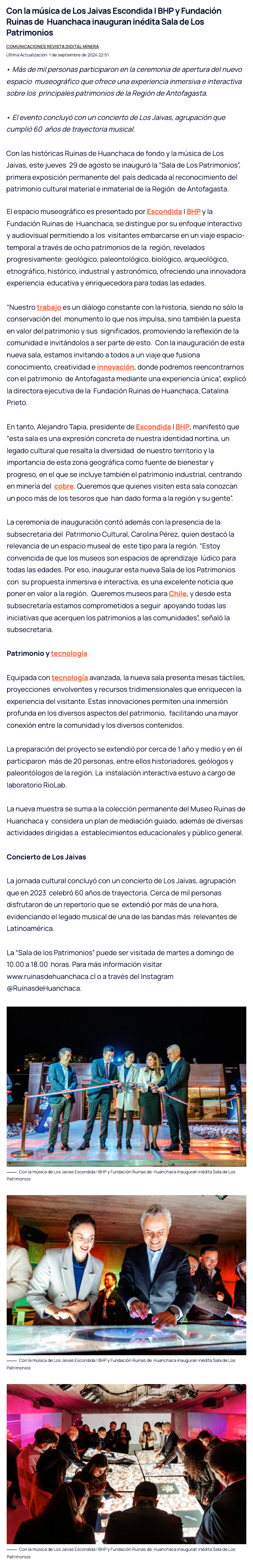 Escondida | BHP y Fundación Ruinas de Huanchaca inauguran inédita Sala de Los Patrimonios - (portalminero)