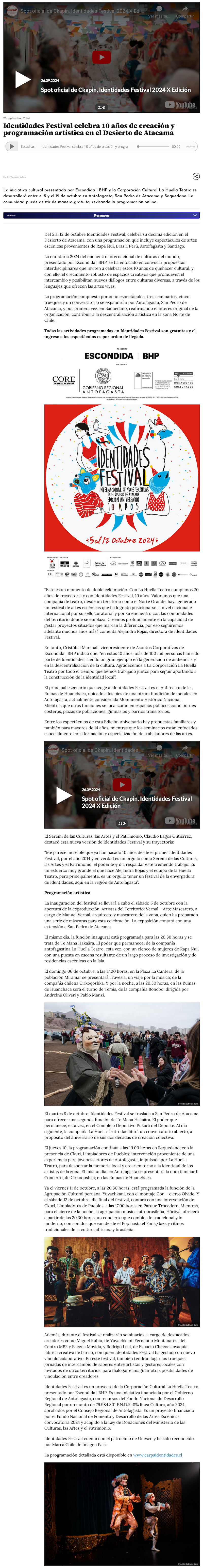 Identidades presentó la cartera para la celebración de sus 10 años - (El Mercurio de Antofagasta)