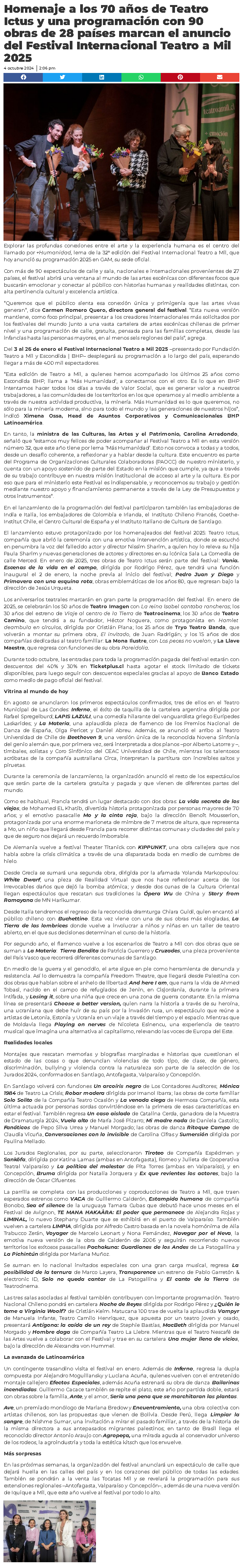 Festival Internacional Teatro a Mil anuncia su cartelera 2025: Se presentarán 90 obras de 28 países - (cnnchile.com)