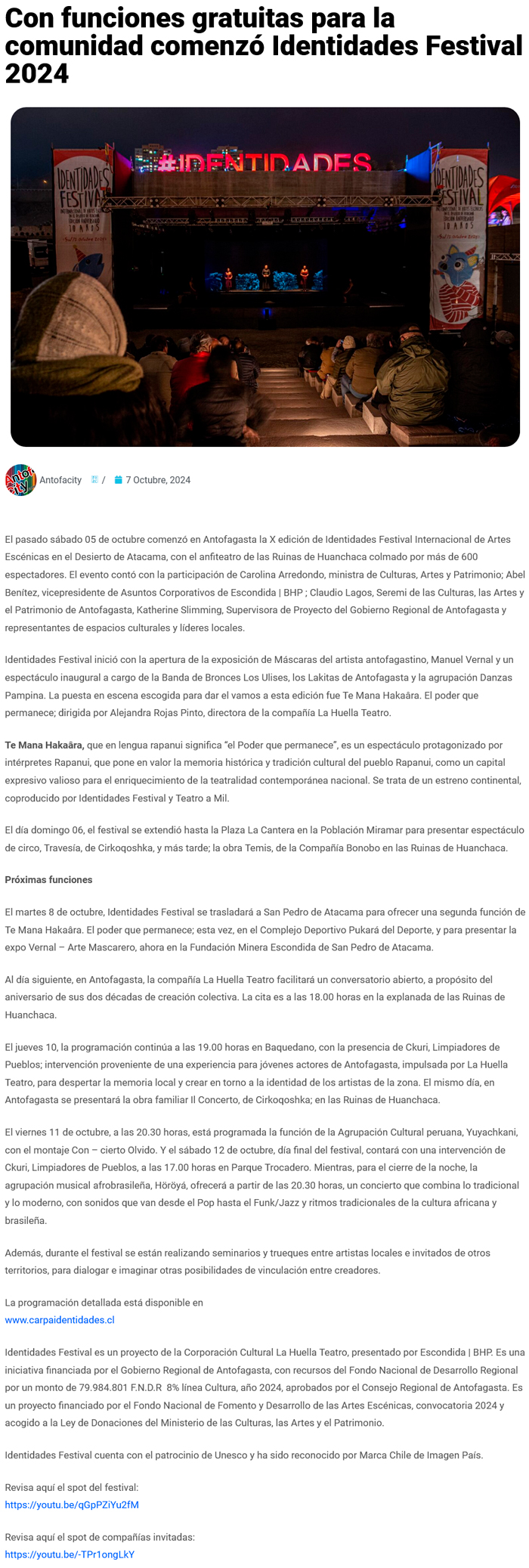 Identidades Festival lanza su décima versión en Anfiteatro Ruinas de Huanchaca - (Antofagasta TV)