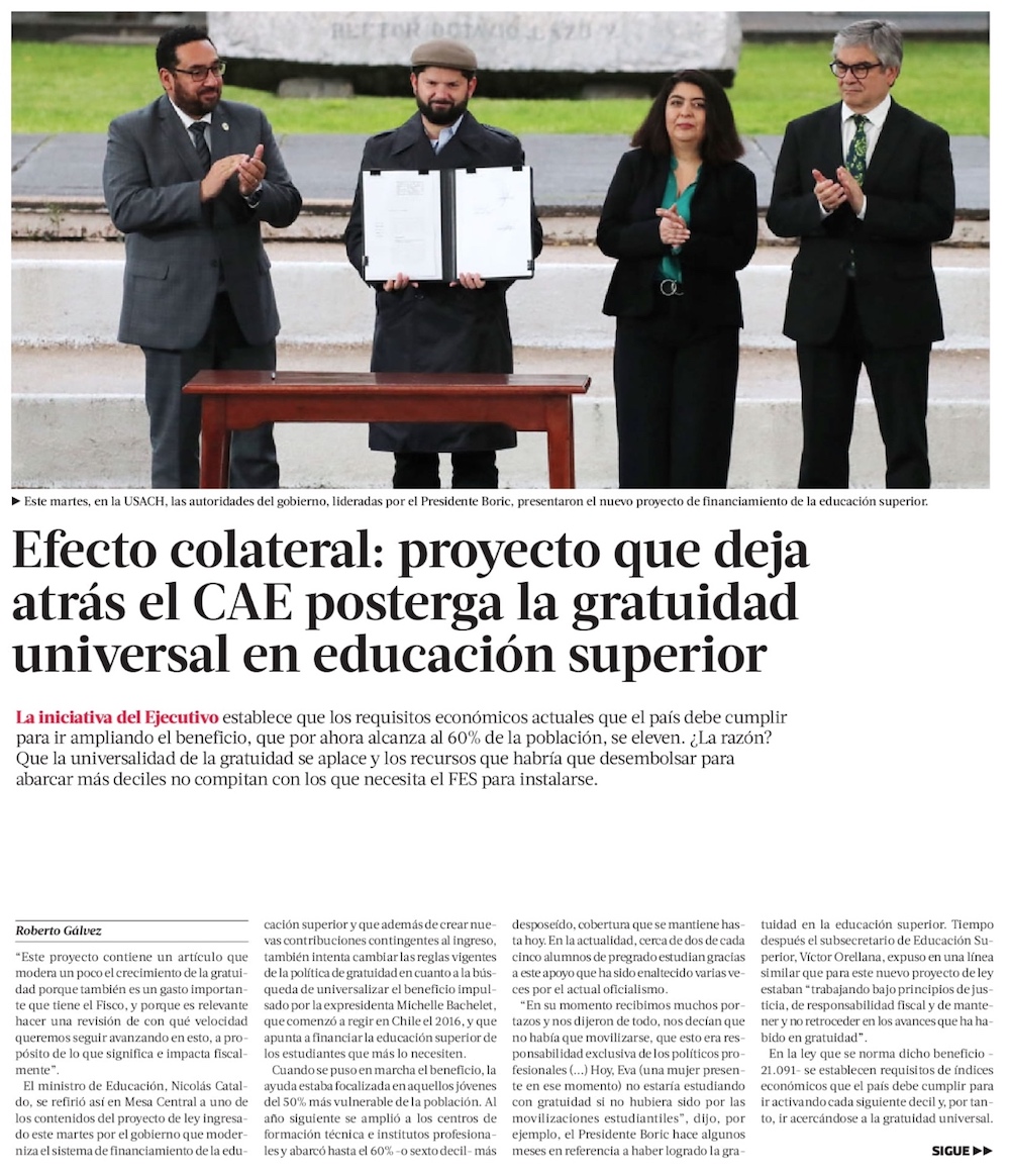 Fin del CAE: morosos pasan obligados al nuevo sistema y frena aumento de la gratuidad - (El Mercurio de Santiago)
