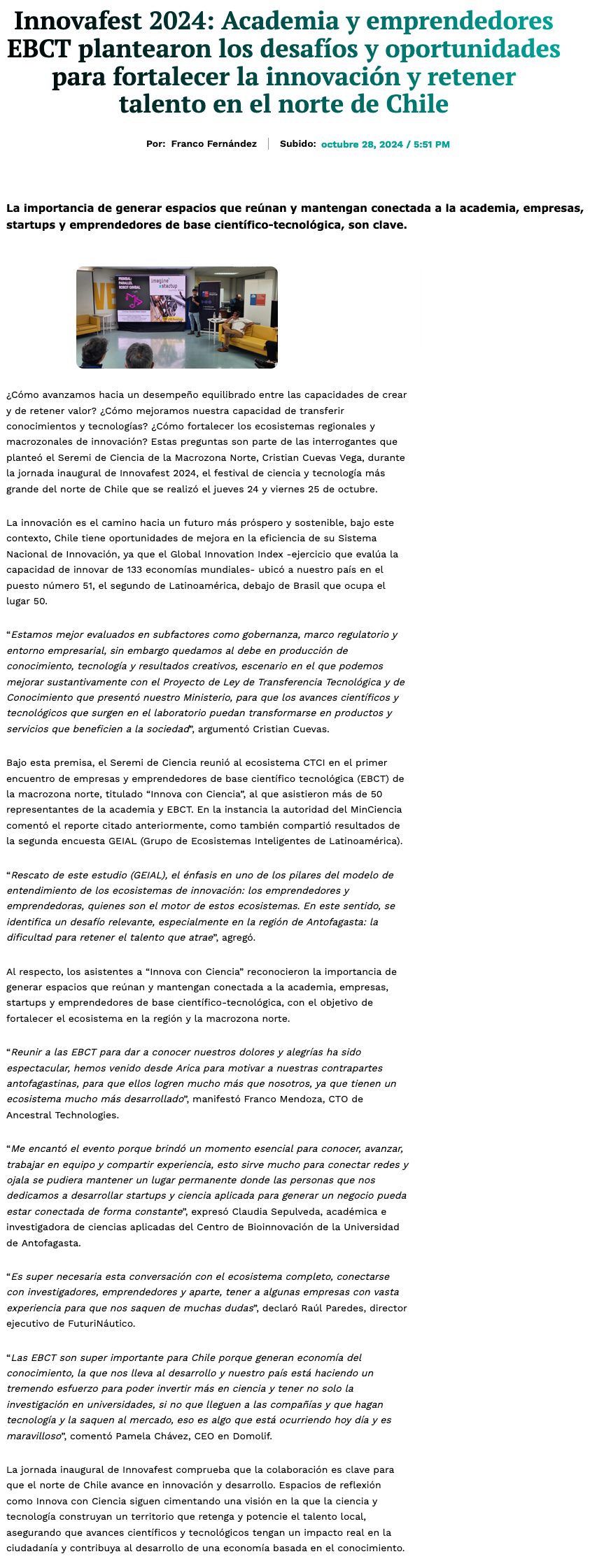 Innovafest 2024: impulsando la innovación y la transferencia tecnológica para un Chile más competitivo - (elreferente.cl)