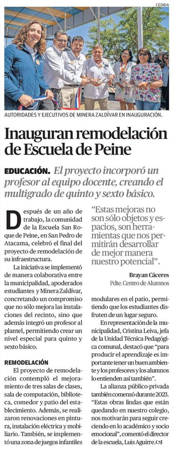 Inauguraron obras de remodelación de Escuela San Roque del poblado de Peine - (calamaenlinea.cl)