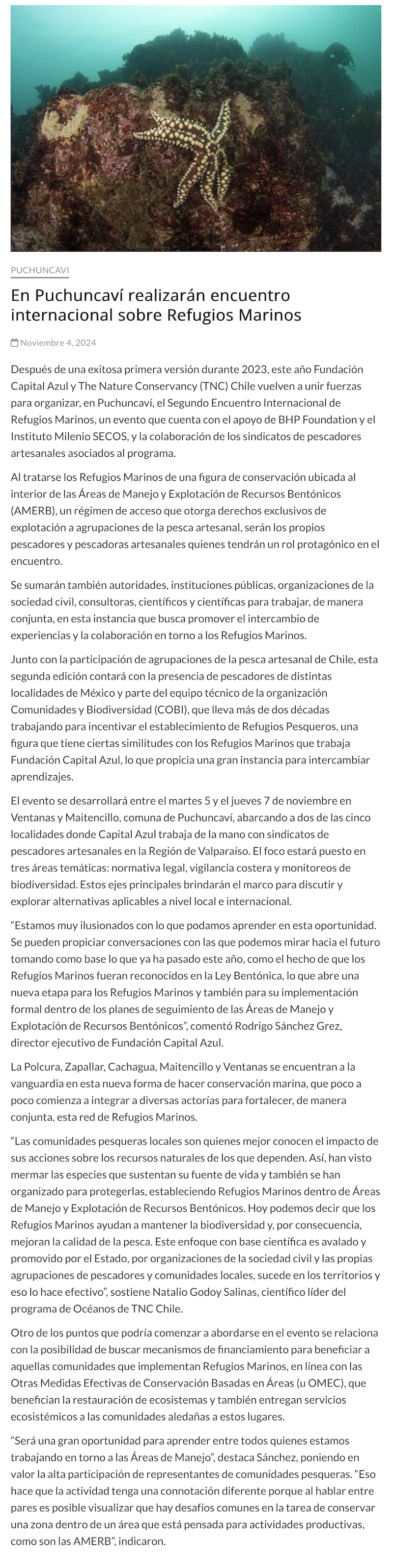 Puchuncaví: Encuentro internacional y multisectorial ahondará en los desafíos de los Refugios Marinos - (radiofestival.cl)