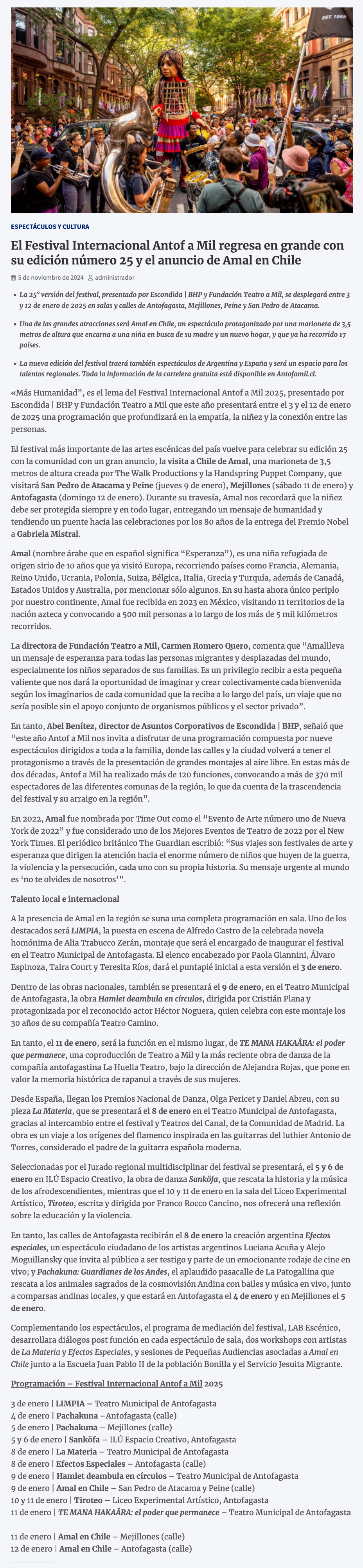 Antof a Mil regresa en una nueva edición con el anuncio de Amal - (El Mercurio de Antofagasta)