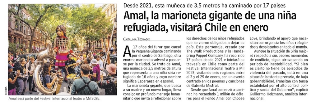 Marioneta gigante Amal llega a Chile de la mano del Festival Internacional Teatro a Mil 2025 - (laNacion)